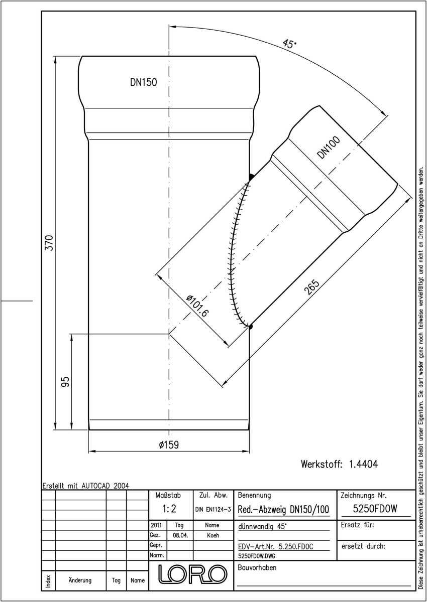 DN 150/125, 45°, V4A