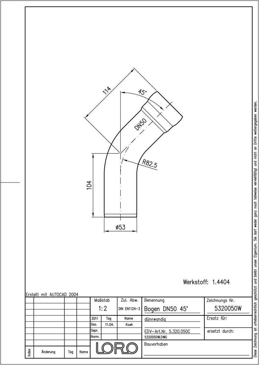 DN 50, 45°, V4A