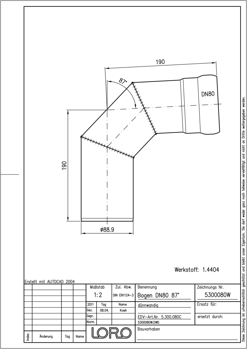 DN 80, 87°, V4A