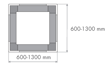 max. 1300mm Breite/Länge - Überstand: 50mm umlaufend größer als Kaminaußenmaß