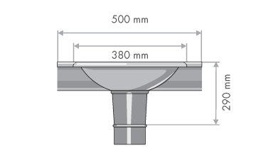 Die trichterförmigen Rinnenkästen erhöhen die gewünschte Abflussleistung und sind gleichzeitig schmückende Gestaltungselemente in der Architektur.