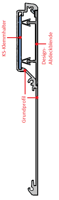 - Kunststoff-Klemmhalter (zur Klips-Montage der Design-Abdeckblende)