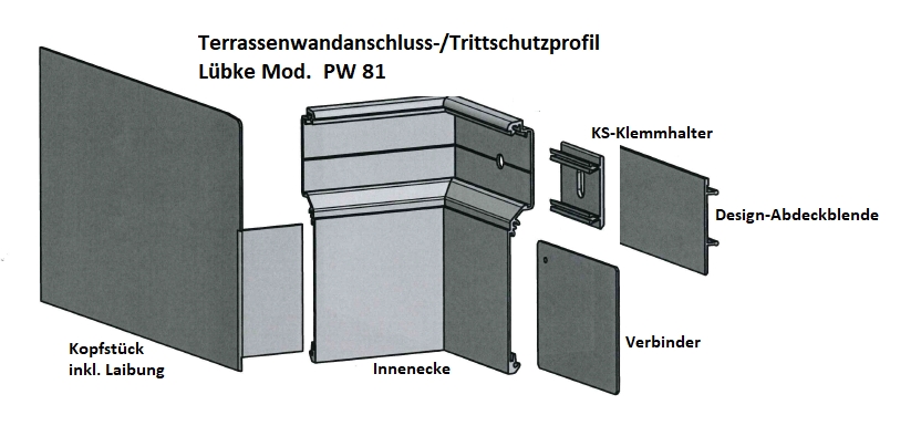 das einzigartige Terrassenwandanschluss-/Trittschutzprofilsystem im steckbaren Baukastensystem