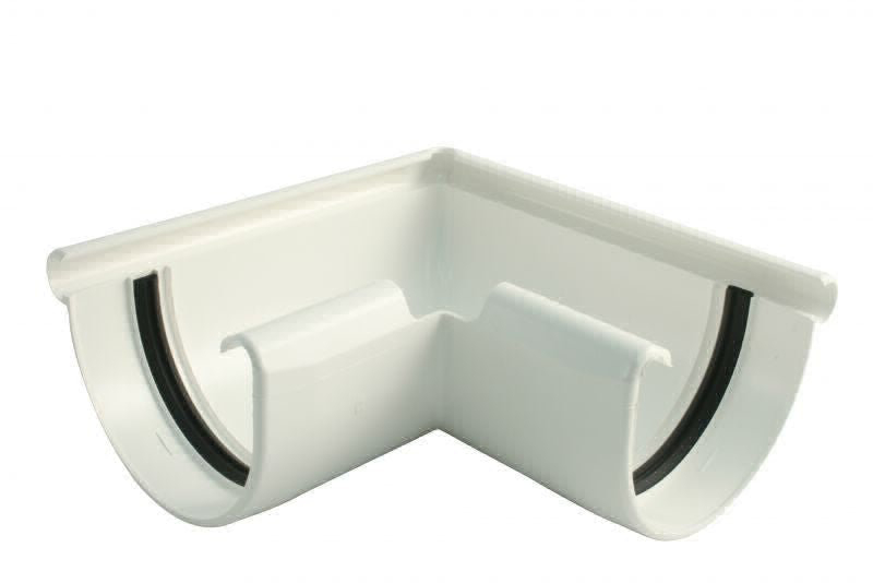 Mit der Außenecke werden über das Nocke-Nut-System zwei Dachrinnenenden im 90° Winkel miteinander verbunden.