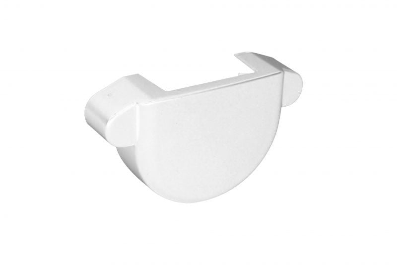 Das Endstück hat eine Dichtung und verschließt durch eine Steckverbindung das Ende einer halbrunden Dachrinne.