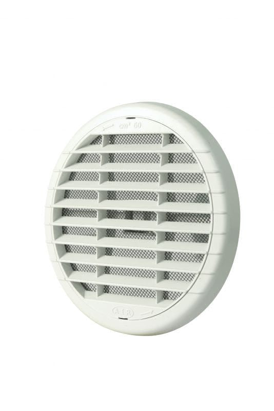 Lüftungsgitter mit Fliegengaze und Klemmfeder, aus Kunststoff (ABS).