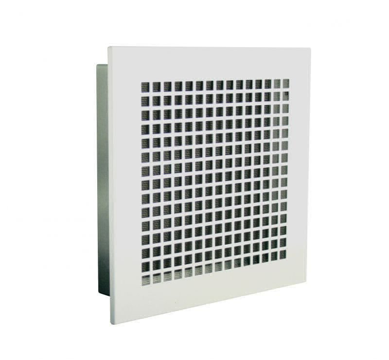 Lüftungsgitter zum Einsatz im Innenbereich als Aufsatzgitter, mit Fliegengaze (Maschenweite 1,5 mm) und Einbaurahmen, Gitter aus weiß lackiertem Stahlblech, mit quadratischen Lüftungsöffnungen von 10 x 10 mm Gittergröße Einbaumaß Freier Luftdurchlass EAN 065878 160 x 160 mm 137 x 137 mm 63 cm² EAN 065885 185 x 185 mm 165 x 165 mm 95 cm² EAN 065892 235 x 235 mm 210 x 210 mm 175 cm²