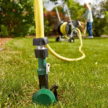 Einfach an den Gartenschlauch anschließen und in die Wassersteckdose stecken.