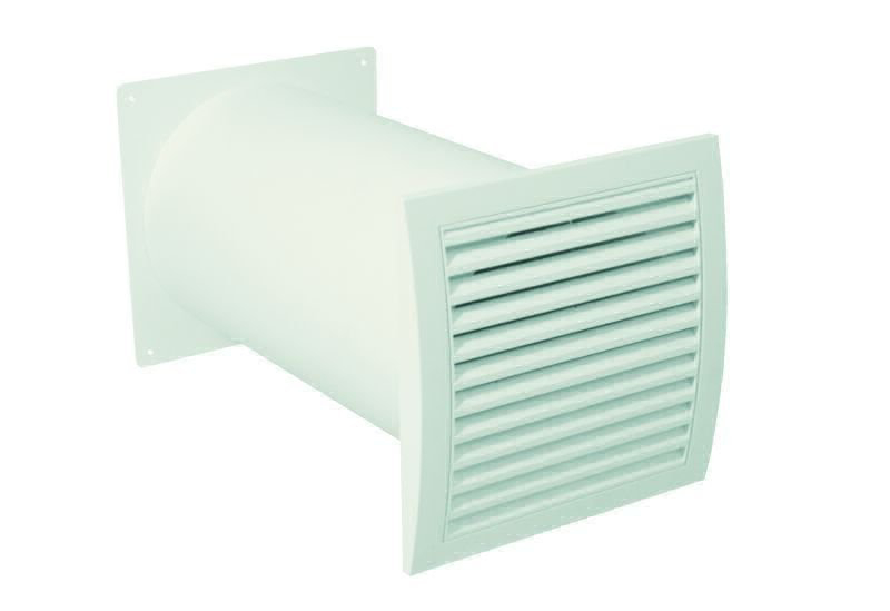 Teleskopkanal mit innen liegender, selbsttätiger Rückstauklappe zum Anschluss an Flachkanalsystem (Adapter rund/eckig) oder zum Anschluss an Flexschläuche oder Rohre (Maueranschlussstutzen), für Mauerstärken bis 480 mm, Weiß EAN 064239 EAN 064369 Material Einzelteile aus cadmiumfreiem Kunststoff PVC-U, Fliegengitter aus Fiberglas Einzelteile aus cadmiumfreiem Kunststoff PVC-U Rohr-Ø außen 108 mm 158 mm Abmessung Gitter 140 x 140 mm 220 x 235 mm Abmessung Adapter (rund/eckig) 140 x 140 mm - Abmessung Maueranschlussstutzen - 208 x 208 mm Anschluss Zum Anschluss an Flachkanalsystem 100 (110 x 54 mm) Zum Anschluss an Flexschläuche oder Rohre Ø 150 mm Freier Luftdurchlass min.