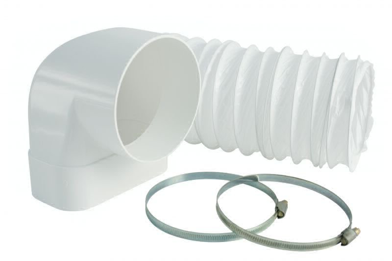 Umlenkstück mit Schlauch, bestehend aus: Umlenkstück mit Stutzen, Flexschlauch aus Kunststoff 500 mm und 2 Rohrschellen.