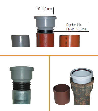 HT-Übergang von 110mm (auf 97 bis 103mm Innendurchmesser)