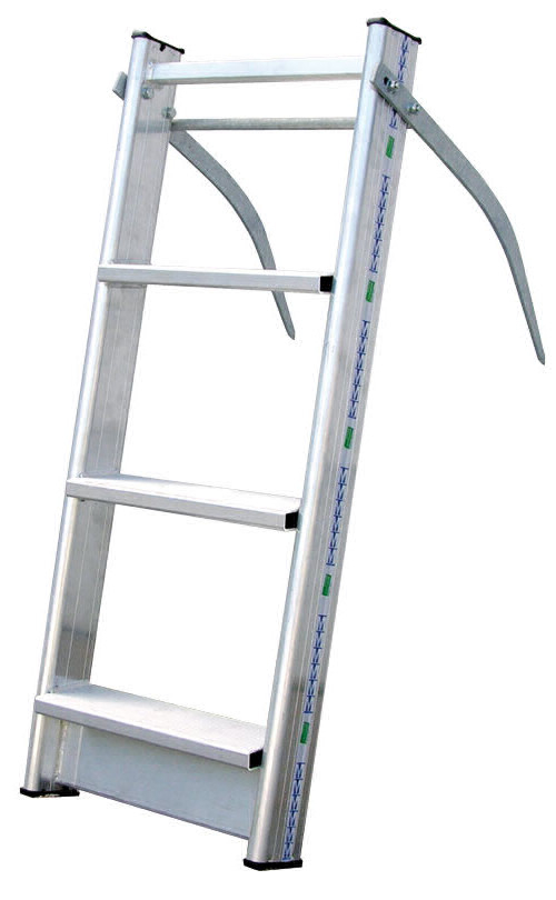 - spezielle Reetdach-Leiter mit langem Einhängedorn und extrabreiten Stufen