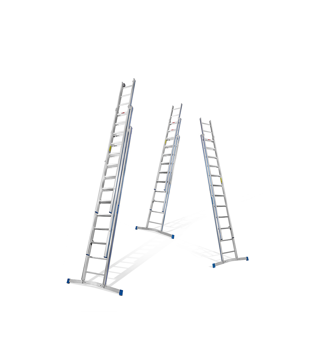Das kleine Packmaß für große Höhen. Unsere zwei- und dreiteiligen Schiebeleitern sind