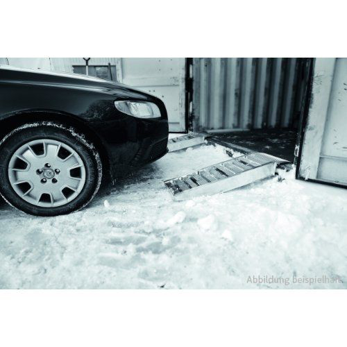 Zur Auffahrt in Fracht-Container oder als Bordsteinrampe können die Kurzrampen mit Luft- oder Gummi-Bereifung bis zu 8 Tonnen befahren werden. Der flache Anfahrtswinkel ermöglicht ein leichtes Befahren auch bei geringer Bodenfreiheit. Die Fahrflächen aus hochfestem Aluminium-Strangpressprofil sind auf Abstand geschweißt und bieten hervorragenden Griff auch in matschiger und eisiger Umgebung.