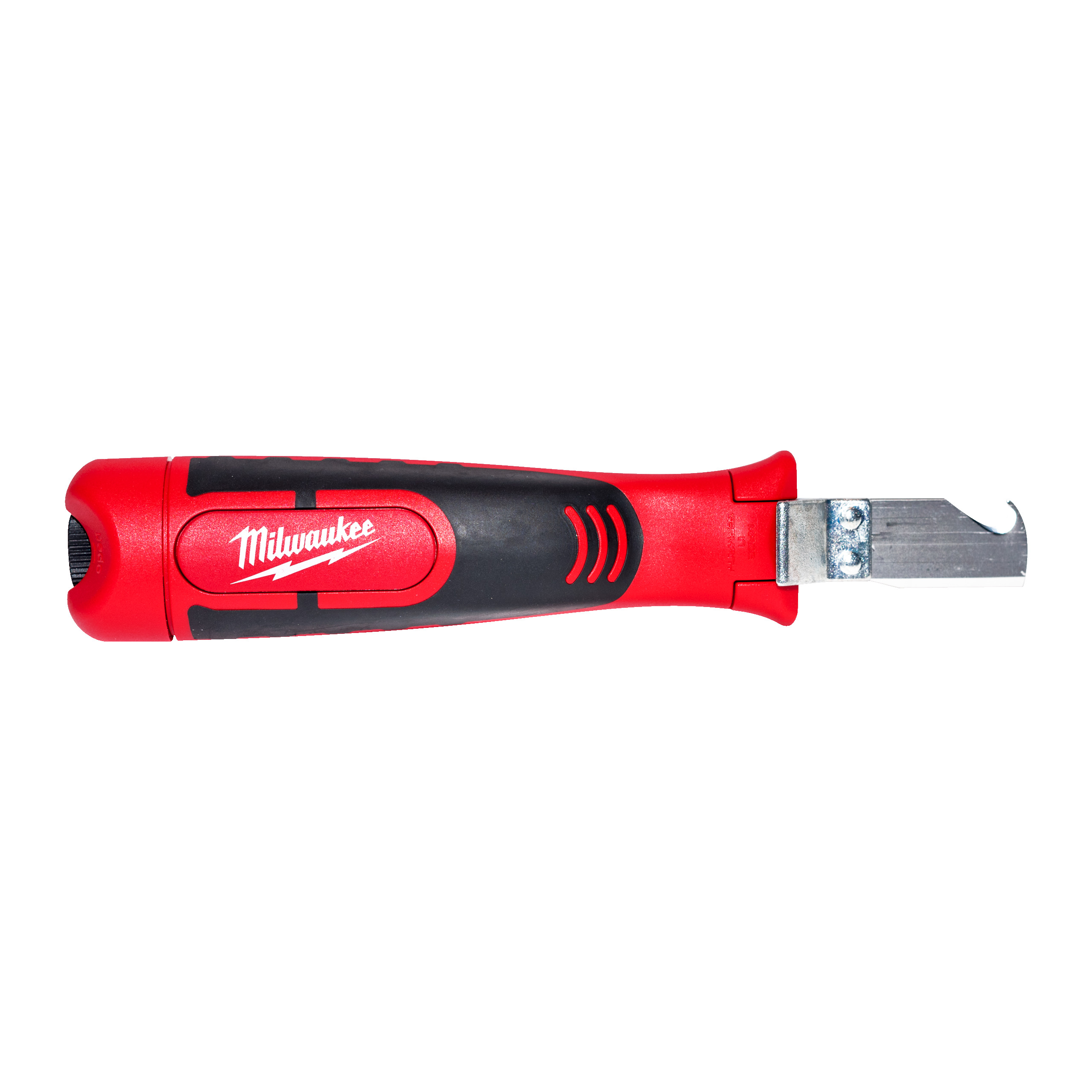 Integrierte Hakenklinge für vielseitige Anwendungen. Die Sicherheitskappe auf der Klinge reduziert das Verletzungsrisiko.