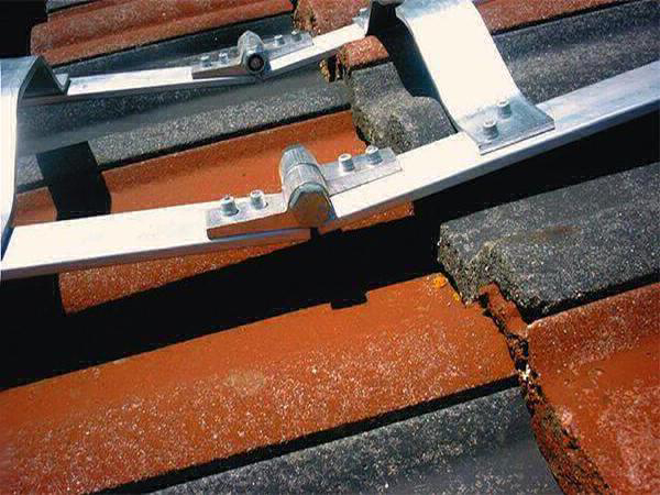 Klappbare Dachleiter Standard 3 bzw. 5 teilig Holme und Sprossen aus Alu-Sonderprofil Sprossen gebogen mit Einkerbung zum Einhängen in Dachhaken 4-fach mit Spezialnieten vernietet.