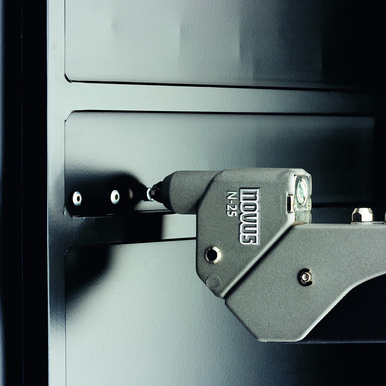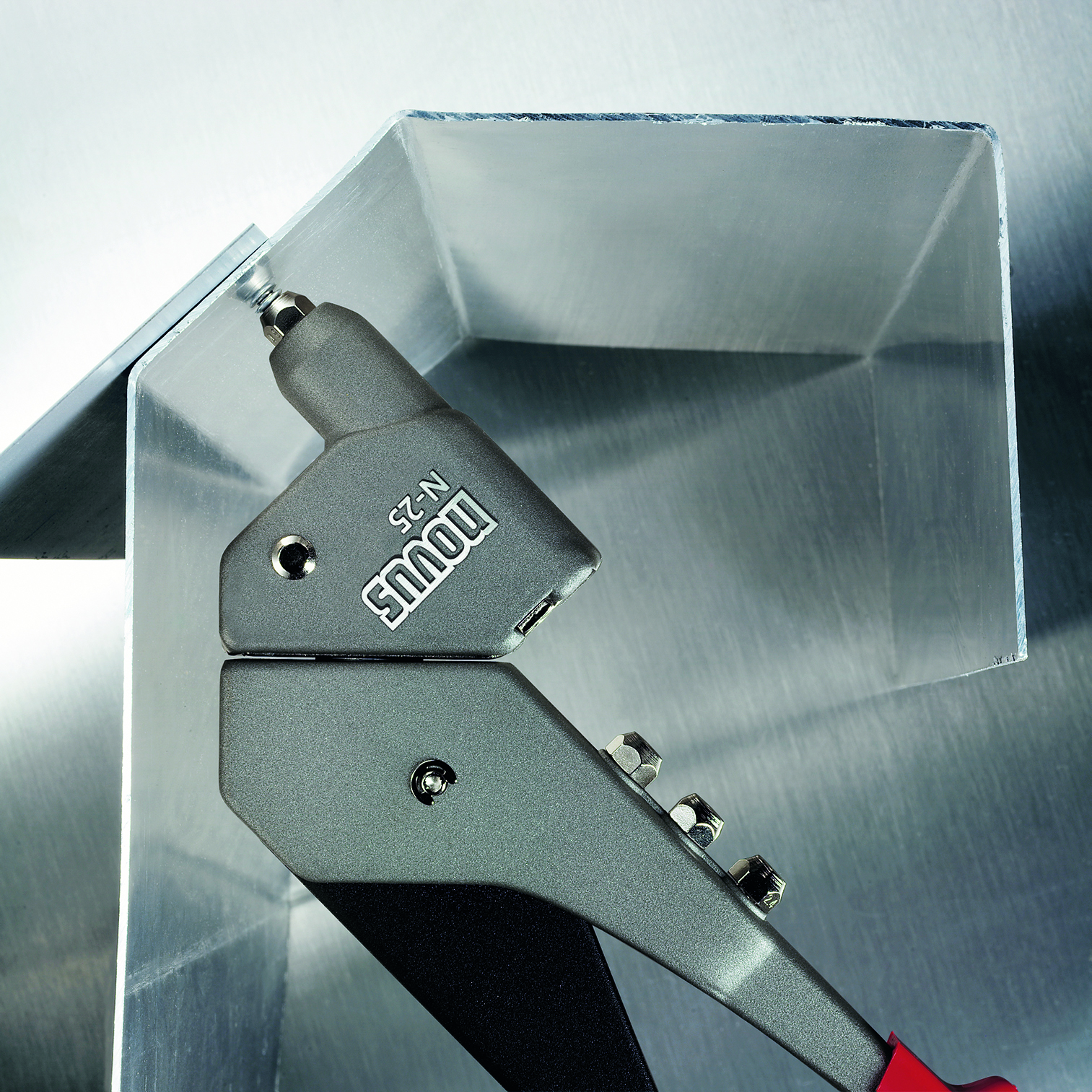 Blindnietzange. Die professionelle Blindnietzange mit Schwenkkopf für universelles und präzises Arbeiten beim Heimwerken und in der Werkstatt. Gerätekörper aus Aluminium und Hebel aus Stahlblech. Ausgestattet mit vier Mundstücken inklisive Montageschlüssel, Griffsicherung und Rückholfeder für 1-Hand-Bedienung. Verarbeitet Aluminium Blindniete A2,4, A3, A4, A5, Stahl Blindniete S3 und S4 und Kupfer Blindniete C4.
