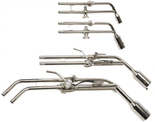 Erdgas-Druckluft-Lötpistolen für universelle Einsatzzwecke bestens geeignet – 2000°C Flammentemperatur – Leistungsstarke Brennereinsätze mit konzentrierter und harter Flamme zum Hartlöten, Glühen, Verzinnen, Härten, Anwärmen, Auftauen, Schmelzen, Abbrennen, usw. - Zum Beispiel Hartlöten und Anwärmen (Industrie), Schmelzen von Edelmetallen (Schmuckbrache, Dentalbranche) - Wirtschaftlich durch die Verwendung von Druckluft - Optimal aufeinander abgestimmte Einzelteile für störungsfreien Betrieb - Ausführung für Niederdruck(ND) bis max. 0,3 bar - Mit Zündflamme - Anschluss jeweils über 9 mm-Schlauchanschlussstutzen