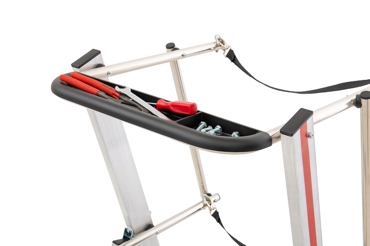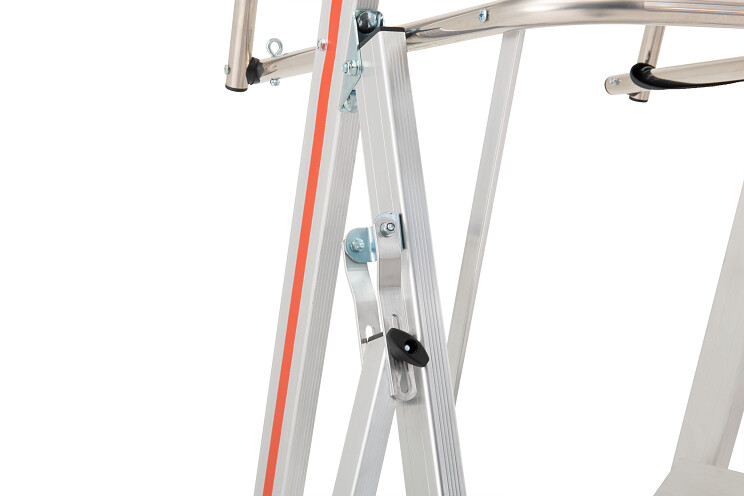 - Strebenfreiheit am Stützteil für flexibleren Einsatz der Leiter