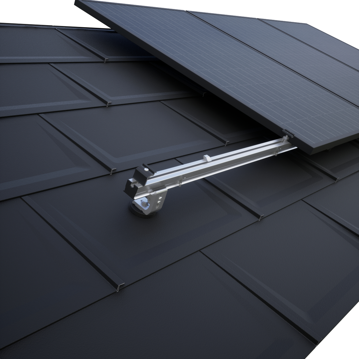 Zur variablen Montage von Photovoltaikmodulen auf allen PREFA Kleinformat-Dachsystemen mit flexibler Höhenanpassung zum Ausgleich von Niveau-Unterschieden.