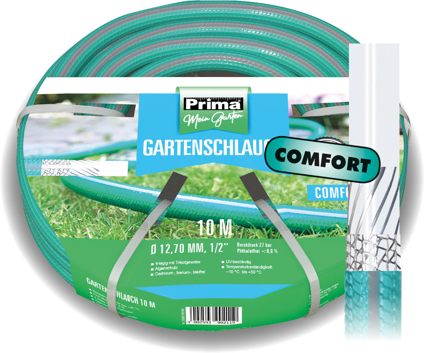 Der 4-lagige Prima Comfort Gartenschlauch mit Trikotgewebe ist eine ideale Unterstützung für alle Bewässerungsanforderungen rund um das Haus.