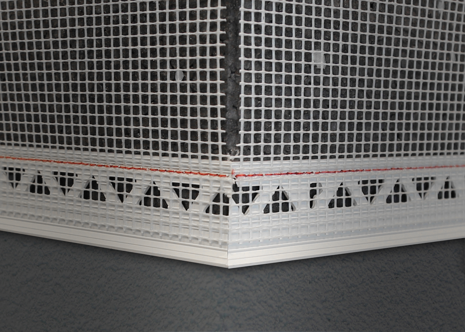 Das PROTEKTOR Einsteckprofil aus PVC mit Tropfkante für 6 mm Putzdicke. Putzschenkel mit angenähtem alkalibeständigen Glasfasergewebe.