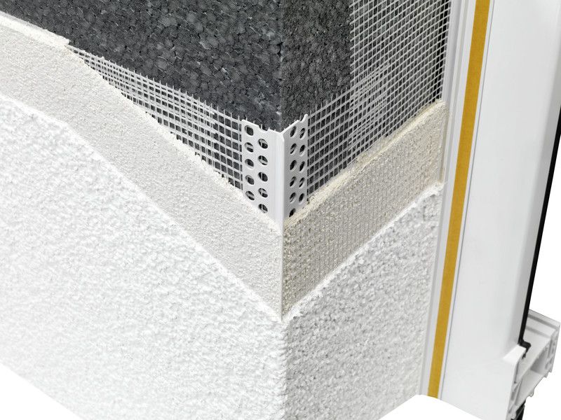 Der PROTEKTOR Gewebeeckwinkel aus Hart-PVC, mit Abzugskante und alkalibeständigem Glasfasergewebe, ist geeignet für Wärmedämmungen mit Putzen ab 6 mm.