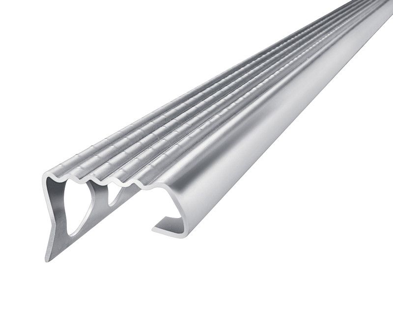 Das PROTEKTOR-Treppenkantenprofil aus Edelstahl (V2A, 1.4301) mit matter Oberfläche und Gleitschutzprofilierung verringert die Rutschgefahr und verleiht der Treppe ein modernes Design. Im gleichem Zuge wird die empfindliche Treppenkante vor Beschädigung und verstärkter Abnutzung geschützt. Prüfungen: - Prüfung der Rutschhemmung gemäß DIN 51130 und Merkblatt BGR 181, Ergebnis der Prüfung: R 10 - Bestimmung der Verdrängungsraumes gemäß DIN 51130 und Merkblatt BGR 181, Bewertungsgruppe für den Verdrängungsraum: V 8 Bitte beachten Sie auch folgende Merkblätter: *Merkblatt Planung und Anwendung von metallischen Putzprofilen; Herausgeber: Europäischer Fachverband Europrofiles (www.europrofiles.com) *Merkblatt Putz und Trockenbau in Feuchträumen; Herausgeber: Zentralverband des Deutschen Baugewerbes (www.zdb.de) *Merkblatt Winterbaustellen; Herausgeber: Bundesverband der Gipsindustrie e.V. (www.gips.de)