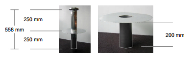 - Gesamthöhe Oberteil 558 mm inkl. Haube / Unterteil 200 mm
