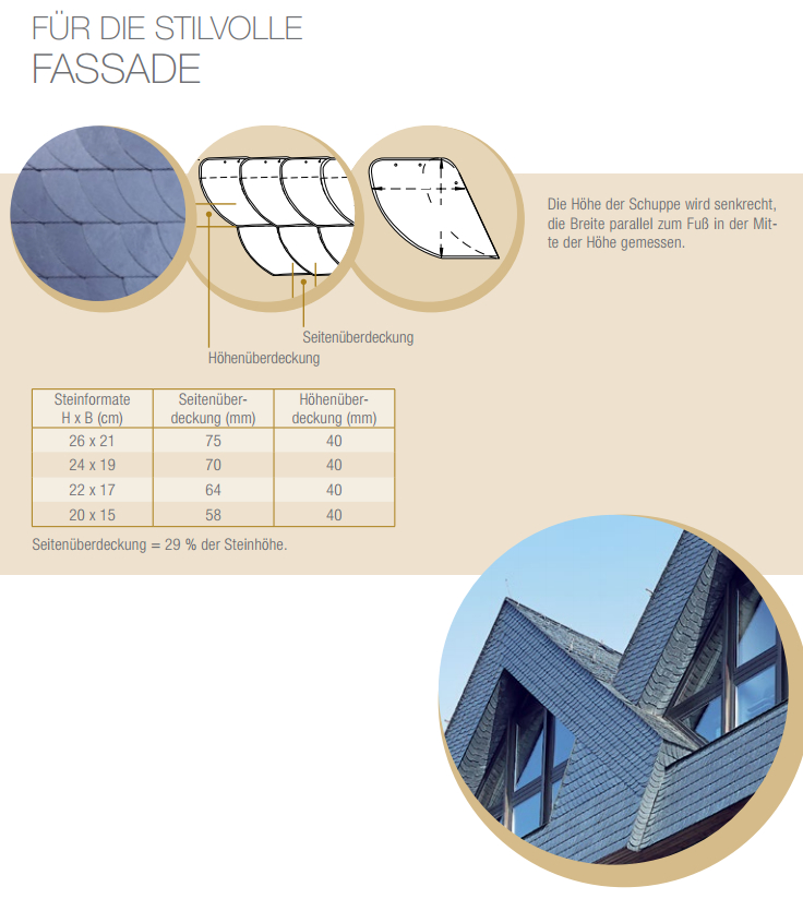 Von der wirtschaftlichen Universal-Deckung, über die zahlreichen Deckarten für Fassadenbekleidungen bis hin zur Schuppen-Deckung lässt sich für jeden Geschmack und Geldbeutel die passende Schieferdeckung mit InterSIN® realisieren.