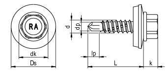 RP-r, Bohrschraube, Sechskantkopf mit angepresster Scheibe, 4,8 x 20, Vollgewinde, SW 8, Bimetall (Edelstahl A2/Stahl), RUSPERT®, E16, 100 Stk.