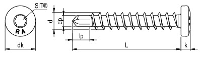 Ansprechende Optik durch unauffälligen kleinen Linsenkopf. SIT®-Antrieb sorgt für stabiles Verschrauben ohne Taumeln. Geringe Randabstände möglich (2,5 x d). Bohrspitze reduziert Spaltwirkung in der Holzunterkonstruktion. Hohe Auszugswerte in dünnwandigen Bauteilen aufgrund des reduzierten Bohrspitzendurchmessers. Dieser erzeugt nur ein kleines Bohrloch im Profilblech und bietet dem nachkommenden Gewinde reichlich Restmaterial um sich einzufurchen. Hohe Auszugswerte auch bei geringer Einschraubtiefe dank asymmetrischem Holzgewinde.