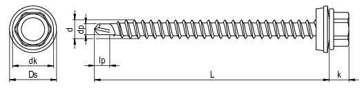 Bohrschraube zur Befestigung von Stahlprofilblechen auf Holz- und Stahlunterkonstruktionen.