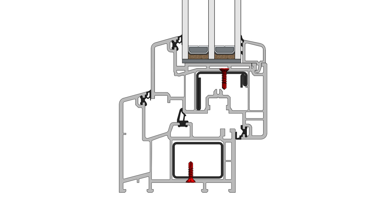 Direktverschraubung von Rahmenprofilen bis 2,5 mm Armierungsstärke ohne Vorbohren.