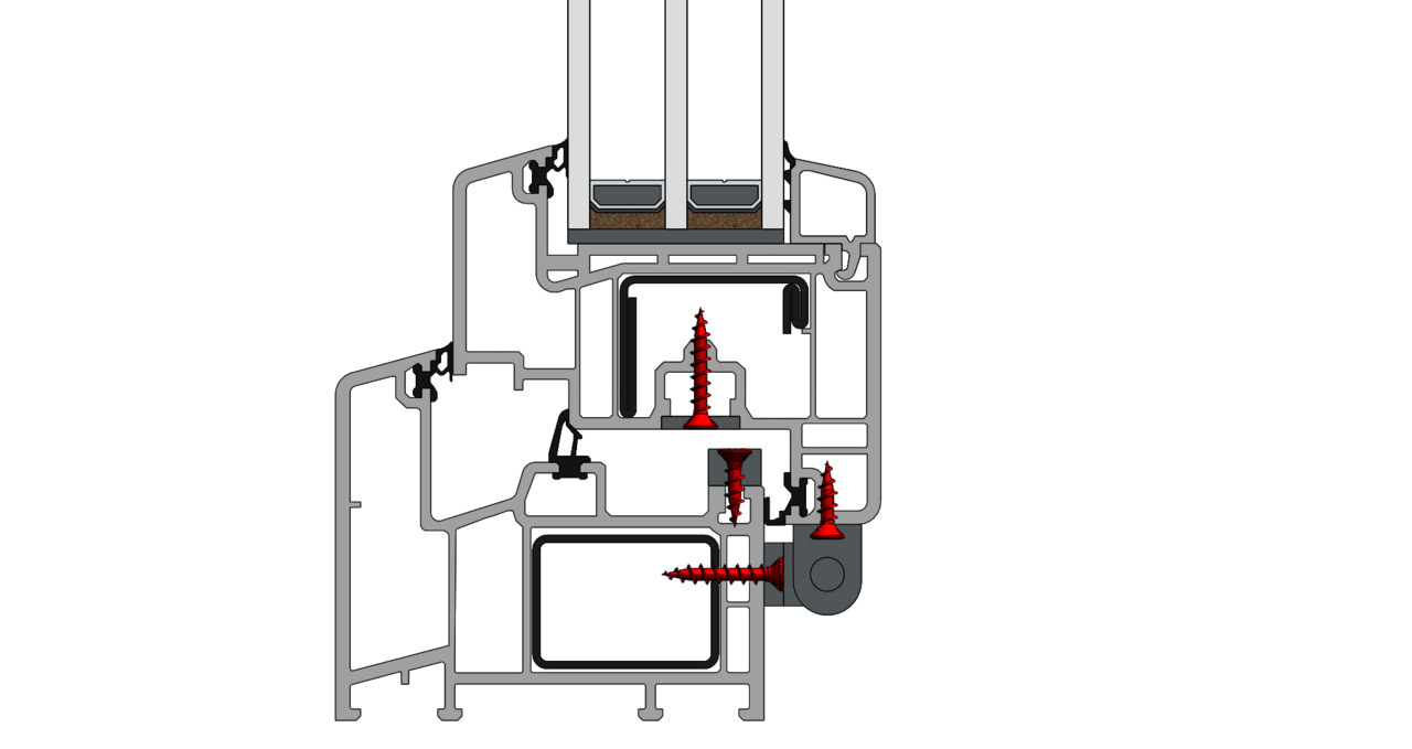 Beschlagschraube für Rahmen- und Flügelprofile.