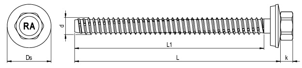 Gewindefurchende Schraube zur Befestigung von Aluminium- und Stahlprofilblechen, Faserzement- und Holztafeln und Sandwichelementen auf Stahl- und Aluminiumkonstruktionen.