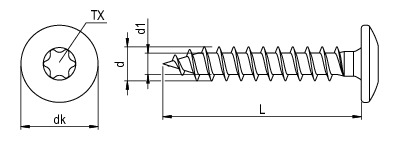 KBS, Kleinbeschlagschraube, Halbrundkopf, 6,0 x 50, Vollgewinde, TX 30, Stahl, verzinkt, blau passiviert, 100 Stk.
