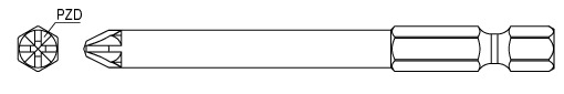 PZD Langbit, PZD 1, L 75 mm, PZD 1, Stahl, gehärtet/vergütet, 10 Stk.