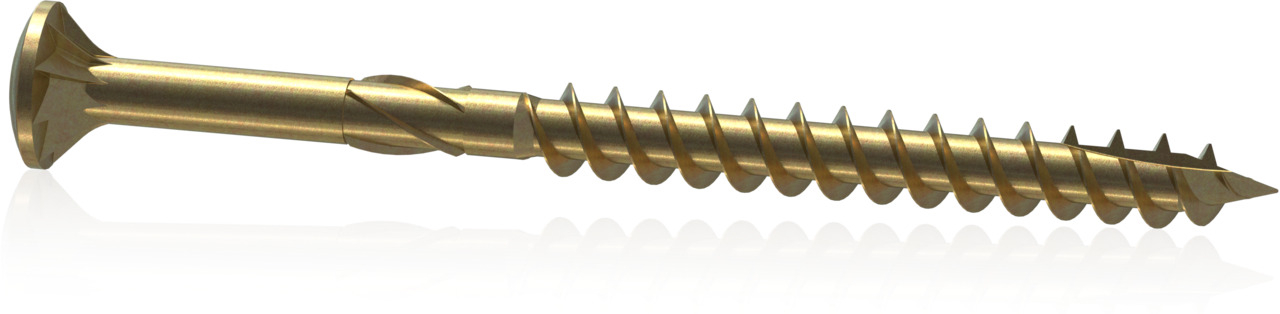 Holzschraube für die verdeckte Verschraubung von Massivholzdielen.