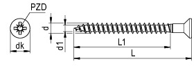 R2 Innenlochschraube, Spanplattenschraube, Flachsenkkopf, 4,5 x 40, Teilgewinde (L1), PZD 2, Stahl, verzinkt, blau passiviert, 200 Stk.