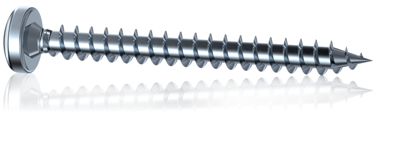 R2 plus, Spanplattenschraube, Pan Head, 6,0 x 50, Vollgewinde, TX 25, Stahl, verzinkt, blau passiviert, 200 Stk.