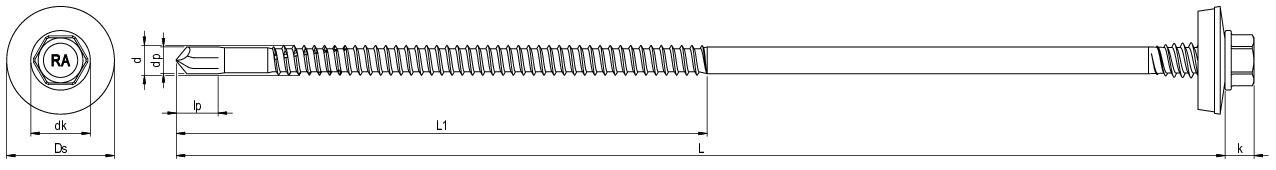 RP-7K-P, Sandwich-Bohrschraube, Sechskantkopf mit angepresster Scheibe, 5,5 x 185, Teilgewinde (L1), SW 8, Bimetall (Edelstahl A2/Stahl), RUSPERT®, E19, 100 Stk.