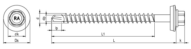 Bohrschraube zur Befestigung von Aluminium-, Stahlprofilblechen und Stehfalzhaltern auf Holz-, Aluminium- und Stahlunterkonstruktionen.