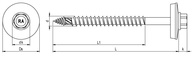 Bohrschraube für spanfreies Verschrauben von Aluminium- und Stahlprofilblechen auf Holzunterkonstruktionen.