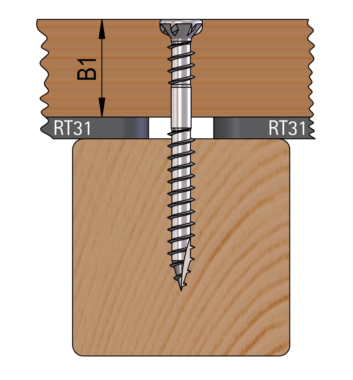 Verschraubung aller gängigen Nadel-, Laub- und Tropenhölzer.
