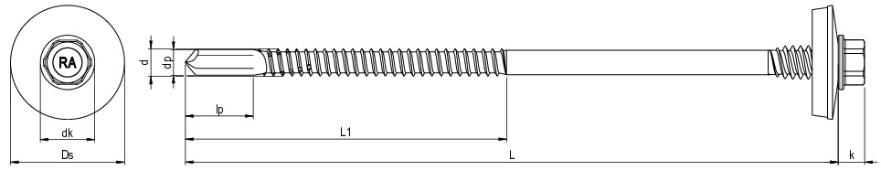 Bohrschraube zur Befestigung von Sandwichprofilen auf dickwandigen Stahlunterkonstruktionen.