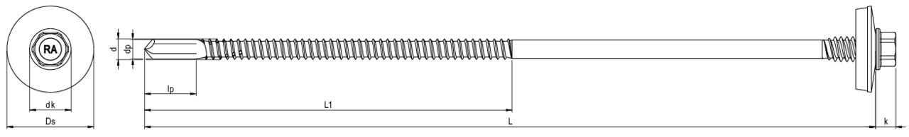 Bohrschraube zur Befestigung von Sandwichprofilen auf dickwandigen Stahlunterkonstruktionen.