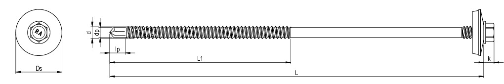 RP-K-P, Sandwich-Bohrschraube, Sechskantkopf mit angepresster Scheibe, 5,5 x 178, Teilgewinde (L1), SW 8, Bimetall (Edelstahl A2/Stahl), RUSPERT®, E22, 100 Stk.