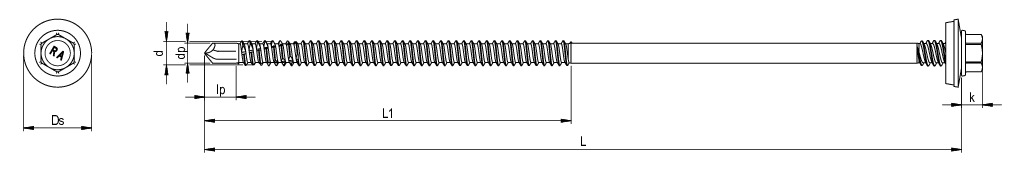 RP-K-P, Sandwich-Bohrschraube, Sechskantkopf mit angepresster Scheibe, 5,5 x 203, Teilgewinde (L1), SW 8, Bimetall (Edelstahl A2/Stahl), RUSPERT®, E16, 100 Stk.