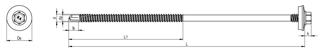 RP-K-P, Sandwich-Bohrschraube, Sechskantkopf mit angepresster Scheibe, 5,5 x 119, Teilgewinde (L1), SW 8, Bimetall (Edelstahl A2/Stahl), RUSPERT®, E19, 100 Stk.